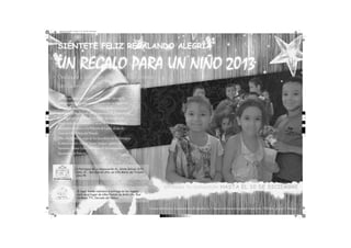 La campaña "Un regalo para un niño 2013" invita a donar juguetes y ropa para 3000 niños de bajos recursos en Villa María del Triunfo, Lima. La colecta es organizada por la parroquia La Anunciación y el Hogar de Niños Posada de Belén, y las donaciones pueden entregarse hasta el 10 de diciembre.