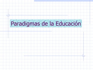 El documento describe cuatro paradigmas educativos: esencialismo, progresivismo, perennialismo y reconstruccionismo. Compara sus visiones sobre el fin de la educación, el papel del alumno y del maestro, los métodos de enseñanza y el énfasis curricular. El progresivismo se enfoca en desarrollar habilidades a través de la práctica y trabajo en equipo. El reconstruccionismo busca resolver problemas sociales usando la escuela como laboratorio y al maestro como agente de cambio.