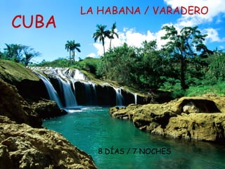 La Habana es la capital de Cuba y una de las ciudades más atractivas del mundo, con bulevares y avenidas amplias y elegantes así como calles estrechas. Sus edificios van desde antiguos hasta modernos. Varadero se encuentra a 130 km al este de La Habana, con más de 20 km de playas de arena fina. Varadero ofrece buceo, pesca, yachting y otras actividades náuticas, paracaidismo y un centro de congresos. El viaje cuesta $849,000 por persona y sale el 12 de mayo de 2011