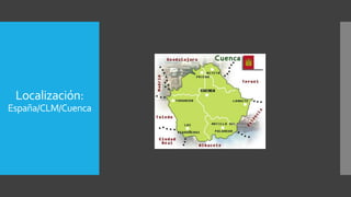 Este documento proporciona información sobre la ciudad de Cuenca, España. Describe su ubicación, clima, población, personajes históricos, patrimonio histórico como la catedral y las casas colgadas, y la ciudad encantada. También discute la sociedad actual, personajes notables como José Luis Perales y Mari Carmen, y la vida académica del autor en La Sagrada Familia y el 1SMR y 2SMR.