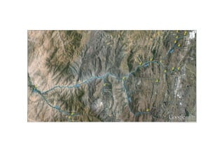 El documento presenta información sobre un curso de hidrología dictado en la Facultad de Ingeniería Civil Cuenca del Río Casma. Se describen los integrantes del curso, la ubicación y características generales de la subcuenca del río Checras. Adicionalmente, se incluyen datos climatológicos e hidrológicos de la zona así como resultados del análisis de la cuenca del río Casma, incluyendo índices de compacidad y forma, curva hipsométrica y densidad de drenaje.