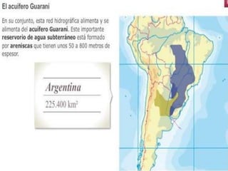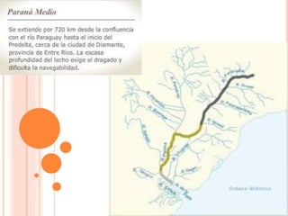 La cuenca del Plata se extiende entre los paralelos 14° y 37° Sur y los meridianos 43° y 67° Oeste, abarcando una superficie de 3.200.000 km2 en cinco países. Está formada por los ríos Paraná, Uruguay, Paraguay, Bermejo y Pilcomayo, que drenan amplias llanuras y sierras. La cuenca alberga una importante actividad agropecuaria y energética a través de represas hidroeléctricas, aunque también enfrenta problemas como la contaminación