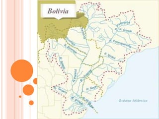 La cuenca del Plata se extiende entre los paralelos 14° y 37° Sur y los meridianos 43° y 67° Oeste, abarcando una superficie de 3.2 millones de km2 en cinco países. Está estructurada en torno a cinco ríos principales - Paraná, Uruguay, Paraguay, Bermejo y Pilcomayo - y sus afluentes. La cuenca se caracteriza por sus llanuras y relieves bajos, clima subtropical con lluvias estacionales, y suelos fértiles aptos para la
