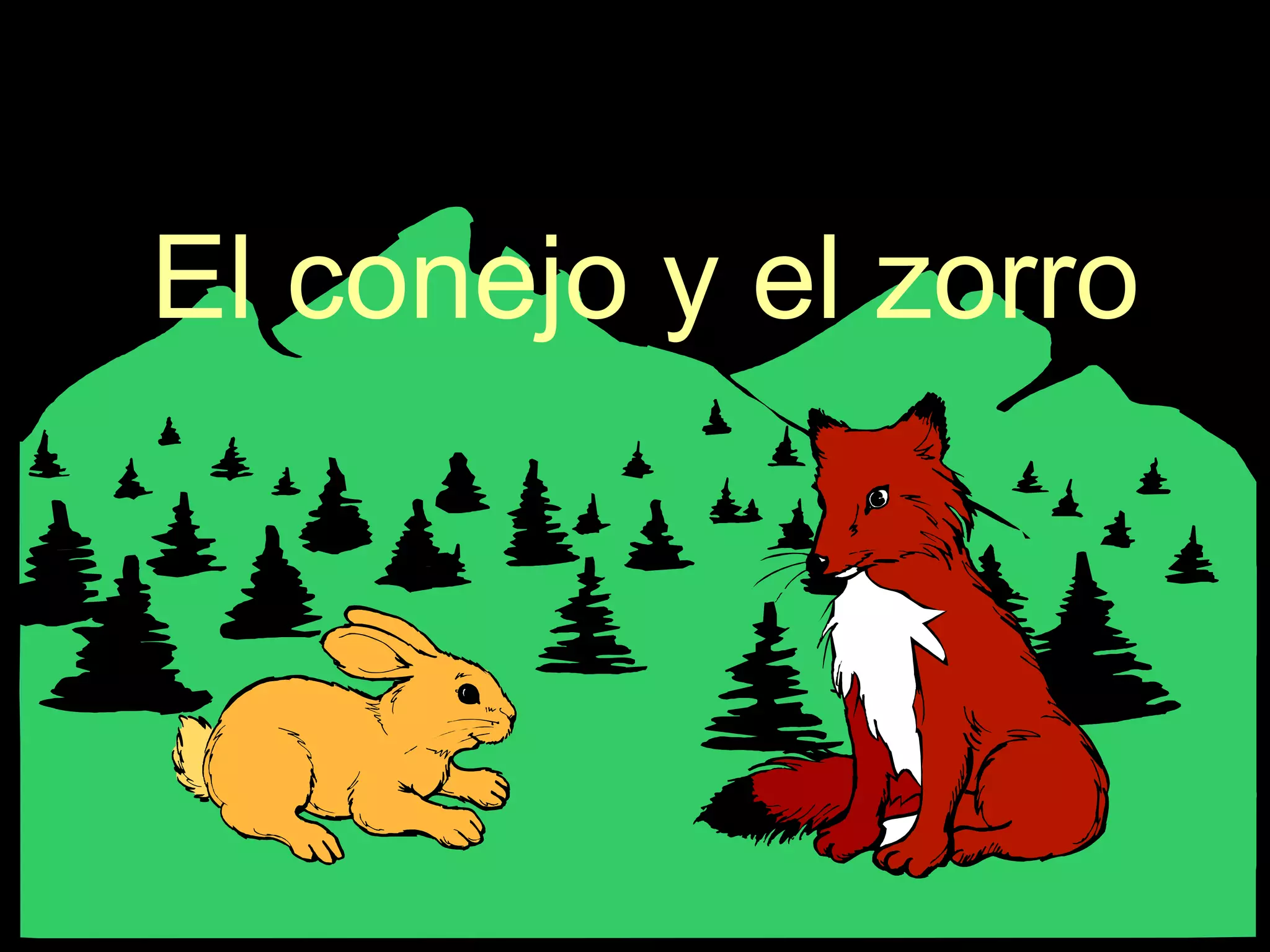 El documento narra la rutina diaria de un conejo y un zorro que viven en el bosque. Cada mañana cuando el conejo va a trabajar a la zapatería, se saluda con el zorro, diciéndose "Buenos días". Por la tarde, cuando regresa del trabajo, se despiden diciendo "Buenas tardes". Y por la noche, al volver a casa, se desean "Buenas noches".