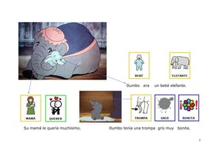 Dumbo era un bebé elefante con orejas muy grandes que era objeto de burla. Su amigo el ratón lo animó a usar sus orejas para volar, y con la ayuda de las golondrinas Dumbo descubrió que podía volar usando sus grandes orejas. Al final, Dumbo aprendió que ser diferente no es malo y que los amigos te aceptan tal como eres.
