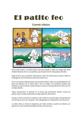 El resumen del cuento clásico "El patito feo" es el siguiente: