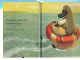 Este documento presenta preguntas sobre un cuento llamado "El pingüino adivino". Se pregunta sobre detalles del cuento como el oficio de Serafín el pingüino, los animales mencionados como el león y la ballena, y la respuesta que le dio Serafín al ornitorrinco.
