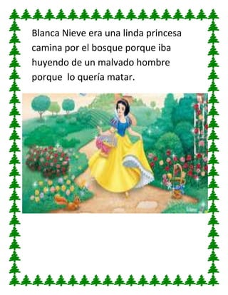 Blanca Nieve huía de un hombre malvado en el bosque y se encontró con Tres Chanchitos y Pinocho, quienes se ofrecieron a ayudarla. Caminaron juntos hasta que el hada madrina los guió a un castillo, pero el gato del castillo no los dejaba entrar hasta que la princesa le explicó su situación. El príncipe del castillo ofreció su ayuda a Blanca Nieve, quien se enamoró de él y se casaron, viviendo felices para siempre junto a sus amigos.