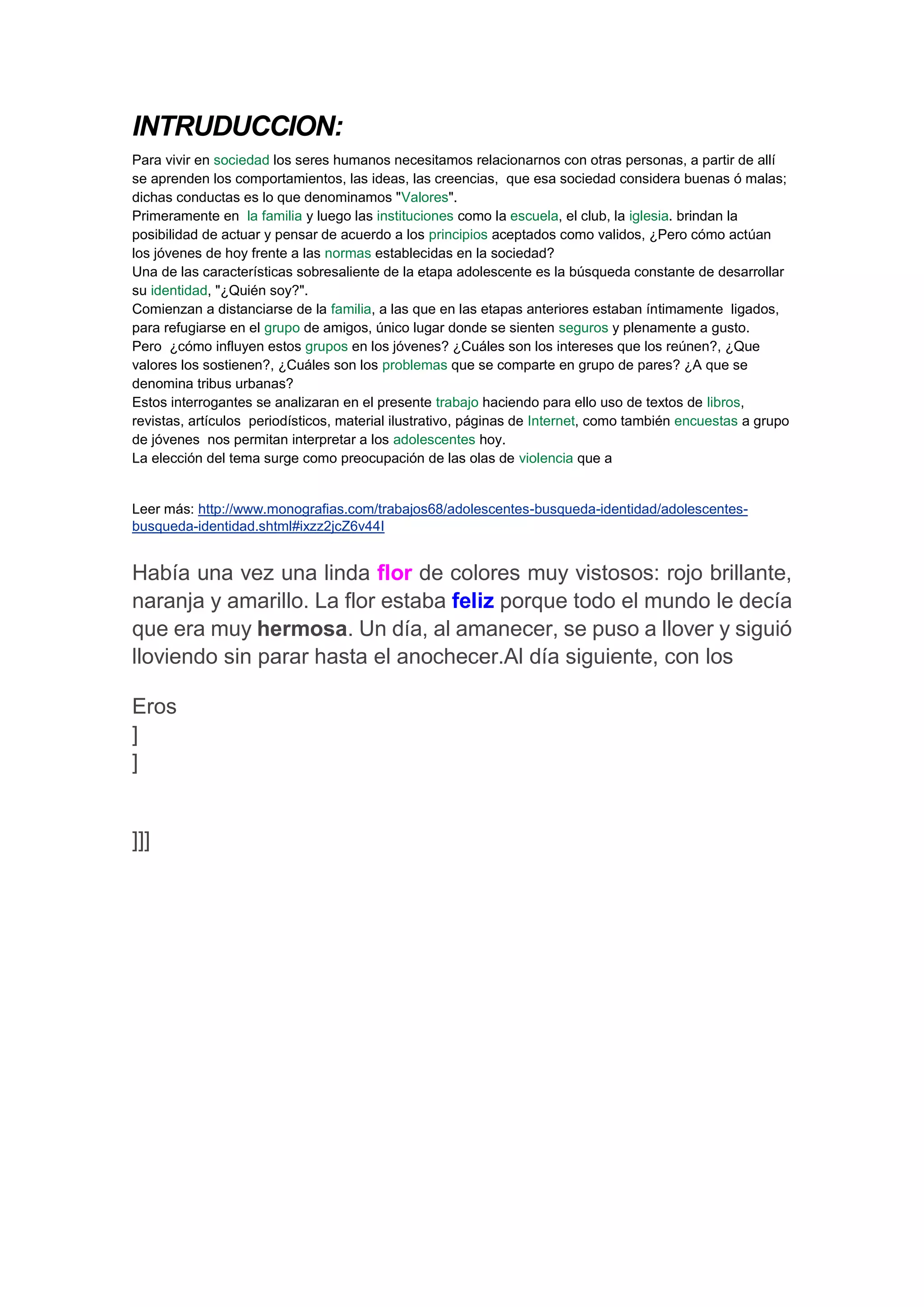 Este documento resume la historia de un árbol mágico que ha vivido durante miles de años y ha presenciado la evolución de la humanidad. El árbol solía contar historias a los humanos, pero dejó de hacerlo después de que estos arrancaran sus manzanas mágicas. En la actualidad, el árbol está a punto de ser talado, pero inspira a una niña a plantar la semilla de su última manzana, con la esperanza de que un nuevo árbol pueda crecer y contar historias en el futuro.