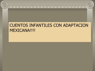 Este documento presenta versiones adaptadas con lenguaje coloquial mexicano de tres cuentos infantiles clásicos: Caperucita Roja, en la que el lobo se queja de ser interrumpido mientras defeca; Caperucita Roja II, donde la abuelita y Caperucita intercambian diálogos agresivos; y Los tres osos, donde el oso papá y el oso hijo se enojan al encontrar sus platos vacíos y la mamá osa les grita para que se callen.