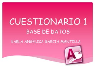 Este documento contiene 10 preguntas sobre cómo utilizar Microsoft Access 2010. Las preguntas cubren temas como cómo cerrar la base de datos, las teclas de acceso rápido para cerrar el programa, las barras que contienen opciones como maximizar y restaurar, las herramientas disponibles en la cinta de opciones, la capacidad de usar Access sin ratón y cómo ocultar la cinta de opciones. También pregunta sobre dónde encontrar las opciones de abrir, cerrar y guardar la base de datos y cómo acceder a la ayuda del programa.