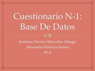 Este documento contiene 10 preguntas sobre funciones y características de Access 2010. Las preguntas cubren temas como cómo cerrar Access 2010, qué combinación de teclas se usa para cerrarlo, qué barra contiene las opciones de minimizar y cerrar, y dónde se encuentran opciones como Abrir y Guardar una base de datos. También pregunta sobre si se puede ocultar la cinta de opciones y utilizar Access 2010 sin ratón, así como dónde encontrar la documentación del programa.