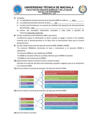 El documento presenta un cuestionario sobre informática con preguntas sobre sistemas operativos, hardware, software, memoria RAM, disco duro, procesadores y otros componentes de una computadora. El cuestionario contiene 35 preguntas de opción múltiple y preguntas abiertas sobre las funciones y características de estos componentes.