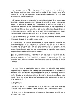 La fuente de poder convierte la energía de la toma de corriente en las tensiones necesarias para alimentar los componentes internos del computador, como +5V, +12V, etc. Una fuente de poder inadecuada puede sobrecalentarse y dañar los componentes, mientras que una falla en la fuente de poder puede causar errores en la memoria u otros problemas en el funcionamiento del sistema. Se recomienda una adecuada ventilación y espacio entre componentes para prevenir sobrecalentamiento.