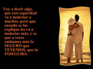 El documento habla sobre la importancia de cuidar a la pareja por encima de la familia. Explica que la familia es segura y permanece, mientras que las parejas requieren esfuerzo diario para mantenerse. También compara el amor de pareja con el cuidado de una flor delicada o de un hijo discapacitado, requiriendo atención constante para sobrevivir.
