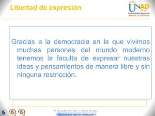 Este documento advierte sobre los peligros del plagio y explica qué es el derecho de autor. Indica que copiar y pegar texto de otros sin citar la fuente es una violación de los derechos de autor y puede ser considerado un delito. También explica que la UNAD sanciona el plagio con calificaciones de cero y reportes si un estudiante comete esta falta en sus actividades académicas.