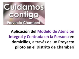 El documento analiza un proyecto piloto de atención integral y centrada en la persona para mayores en domicilios en Chamberí, Madrid, destacando su colaboración entre entidades públicas y privadas. Se presenta una evaluación del programa, que incluye impacto en la calidad de vida, satisfacción y accesibilidad de servicios para las personas mayores y sus cuidadores. Los resultados muestran una mejora en el estado emocional y calidad de vida de los participantes, así como alta satisfacción con el programa.
