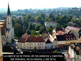 Austria tiene como capital Viena, conocida por sus palacios, castillos y su río Danubio. Viena es también famosa por su rica cultura musical y por ser el hogar de grandes compositores como Franz Schubert. El Danubio es uno de los ríos más importantes de Europa y fluye a través de Viena de manera tranquila y caudalosa, bordeado por construcciones de estilo germánico.