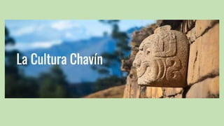 La cultura Chavín se desarrolló entre los años 800-400 a.C. en la provincia de Huari, Perú. Su centro principal fue el Templo de Chavín de Huántar. Los Chavín tenían una sociedad estratificada liderada por poderosos sacerdotes astrónomos. Practicaron la agricultura de maíz y papa con canales de riego e intercambio. Destacaron en la cerámica, escultura monumental como el Lanzón y la arquitectura de su impresionante templo laber