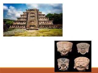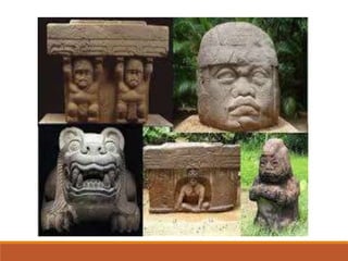 Este documento presenta información sobre varias culturas prehispánicas de México como los olmecas, teotihuacanos, toltecas, mayas, zapotecas, mixtecos, aztecas, purépechas y totonacas. Describe el periodo, ubicación geográfica, características, elementos artísticos y centros ceremoniales más importantes de cada una. En conclusión, señala que México es un país diverso con muchas culturas que existieron antes de la conquista española y algunas sobrevivieron a ella aunque