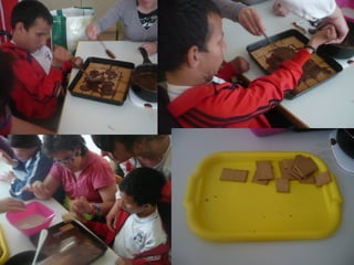 Se preparó una tarta de chocolate entre todos para celebrar el 17 cumpleaños de Kevin el viernes por la tarde. Se describen los pasos para hacer la tarta, como mojar galletas en leche y usarlas como base, calentar y mezclar chocolate para poner sobre las galletas en capas, y dejarla en el refrigerador. Llegaron invitados y cantaron el cumpleaños feliz a Kevin antes de atacar la tarta y bailar, terminando la fiesta.