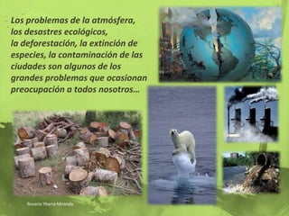 El documento habla sobre la importancia de que las personas tomen acción individual para cuidar el medio ambiente. Algunos de los puntos clave que menciona son que cada persona debe asumir su responsabilidad y empezar a hacer cambios, dar ejemplos de actividades que se pueden hacer a nivel doméstico para cuidar el planeta, y explica la importancia de reciclar los materiales y reducir el desperdicio.
