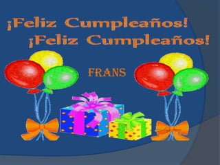 Este documento es una carta de una madre a su hijo Frans por su cumpleaños. La madre expresa su gratitud por el regalo de tener a Frans en su vida desde su nacimiento el 23 de mayo de 1998 y pide la protección y bendición de Dios para su hijo en esta vida compleja que tiene momentos de dolor. Le desea a Frans que sea siempre feliz, que nunca diga que no puede y que en cambio diga que lo logró, y que alcance todos sus sueños creyendo en sí mismo.