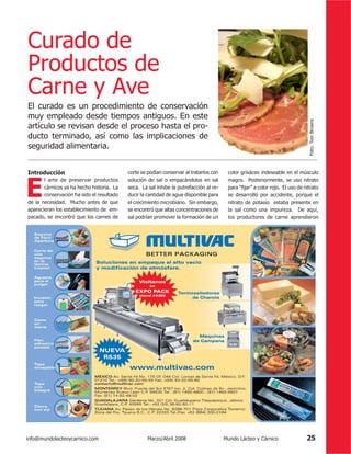 El documento describe los diferentes métodos de curado de productos cárnicos y avícolas. Explica que el curado es un proceso de conservación que involucra la adición de sal, nitritos u otros ingredientes. Luego describe tres métodos principales de curado: curado por encurtido o solución de curado, curado en seco y curado seco salado. También menciona factores como el color, sabor, terneza y rendimiento que son importantes para los procesadores de carne.