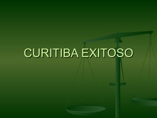 El documento describe el éxito de la ciudad de Curitiba, Brasil en materia de planificación urbana y desarrollo sostenible. Curitiba ha experimentado un rápido crecimiento demográfico y económico, y ha sido reconocida internacionalmente por su infraestructura, educación y medio ambiente. La ciudad ha logrado esto a través de la implementación efectiva de varios planes maestros de urbanismo desde la década de 1940 que se han centrado en el transporte público, el uso del suelo, las áreas verdes y la vivienda