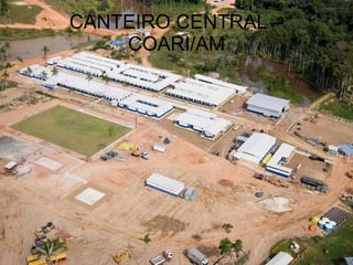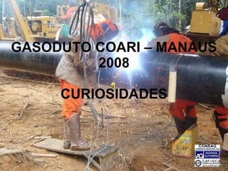 El documento describe las diversas actividades y desafíos relacionados con la construcción de un gasoducto entre Coari y Manaos en la Amazonía brasileña, incluyendo los campamentos en la selva, el transporte de equipos y personal, la alimentación, las instalaciones, la vida en la selva, los pequeños accidentes y la rica flora y fauna de la región.