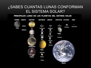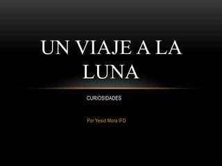 Este documento presenta varios hechos curiosos sobre la Luna. Según científicos, originalmente había dos lunas en el sistema solar, pero una más pequeña chocó con la Luna actual hace millones de años, lo que podría explicar las diferencias en sus caras. También se menciona la teoría más aceptada sobre la formación de la Luna a partir de un impacto con un planeta del tamaño de Marte llamado Theia. Finalmente, se comparten datos sobre la distancia creciente entre la Tierra y la Luna, y sobre misiones espaciales estrell