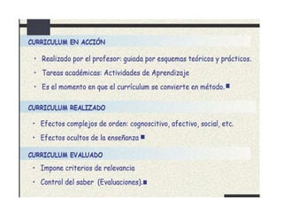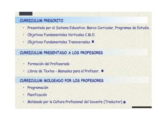 El documento define el currículo como el instrumento clave para la concepción, sistematización y organización de los procesos educativos, desarrollando y promoviendo acciones sociales, científicas, tecnológicas y pedagógicas aplicadas a la práctica educativa en diferentes niveles y modalidades del sistema educativo. El currículo también conlleva y expresa conjuntos de concepciones y valores sobre el ser humano, su mundo natural y social, sirviendo como vehículo para garantizar la direccionalidad e intencionalidad de