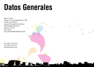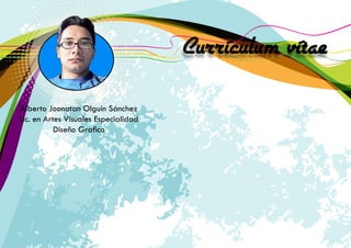 Este currículum resume la experiencia laboral y educación de Alberto Joonatan Olguín Sánchez, un diseñador gráfico mexicano. Tiene más de 10 años de experiencia en diseño gráfico, publicidad y comunicación visual para varias empresas. Estudió una licenciatura en artes visuales con especialidad en diseño gráfico y tiene conocimientos avanzados de programas de diseño como Photoshop, Illustrator e InDesign.