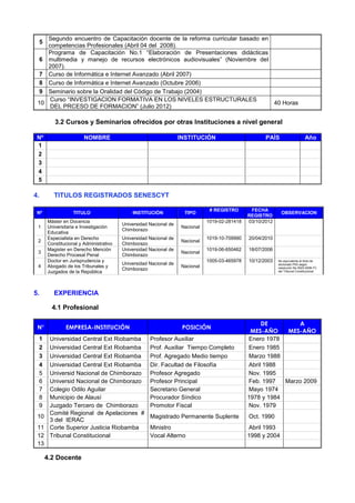 Este documento es la hoja de vida del Dr. Luis Mariano Vallejo López, profesor de la Universidad Nacional de Chimborazo. Detalla su formación académica que incluye títulos de abogado, doctor en jurisprudencia, y maestrías. También describe sus experiencias profesionales como profesor, juez, y asesor legal.