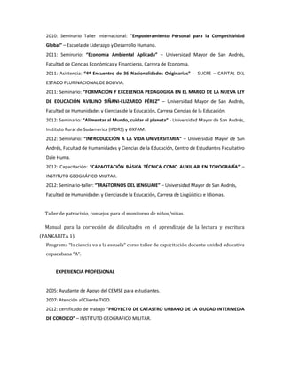 Daniel Machaca Mamani es un ciudadano boliviano nacido en 1985 que actualmente cursa el tercer año de la carrera de Ciencias de la Educación en la Universidad Mayor de San Andrés. Ha tomado varios cursos y seminarios relacionados con la educación, economía y topografía. Su objetivo profesional es desempeñarse en el área de la educación y demostrar sus habilidades. Cuenta con experiencia como ayudante de apoyo estudiantil, atención al cliente, y pasante en una organización que brinda educación.