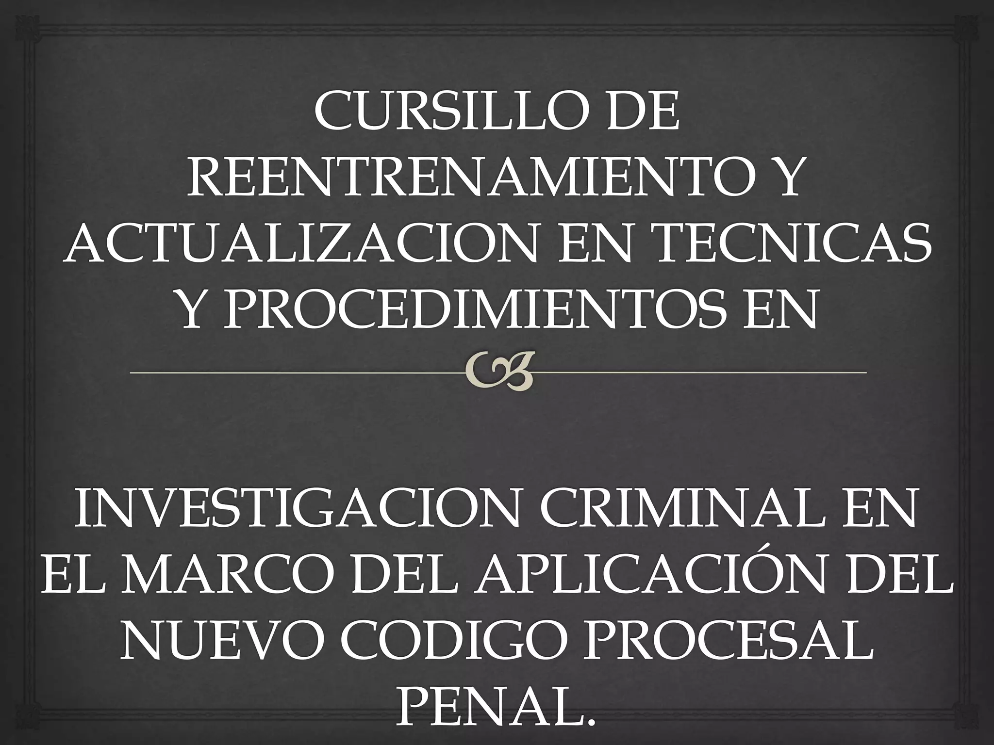 El documento trata sobre un curso de escena del crimen en el marco del nuevo código procesal penal. Explica que los operadores de justicia deben conocer las ciencias forenses como criminalística, antropología, medicina, etc. para interpretar correctamente las pruebas periciales y administrar justicia de forma adecuada. También define conceptos clave como escena del crimen, criminalística, evidencias e indicios, y describe los pasos básicos de la investigación en la escena del crimen.
