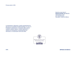 El documento presenta una herramienta pedagógica de la Editorial Esfinge para la enseñanza de la escritura en letra cursiva, que se integra con otros contenidos del currículo educativo mexicano. Se centra en el aprendizaje de la lengua española, incluyendo ejercicios de redacción, ortografía y reflexión sobre la lengua. Además, se abordan temas paralelos como autoestima, hábitos y civismo, con un enfoque en la práctica exhaustiva y variada de ejercicios.