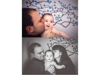 El documento presenta la página web y contacto de La Cristina Fotografía, un estudio dedicado a la fotografía de papás y mamás. El texto habla sobre la búsqueda de la luz como el foco de atención en la fotografía y agradece la asistencia a un evento. Se incluyen varias opciones de contacto como la página web, Facebook y números telefónicos para cualquier duda o pregunta.