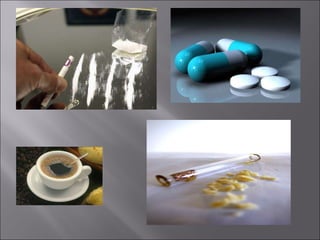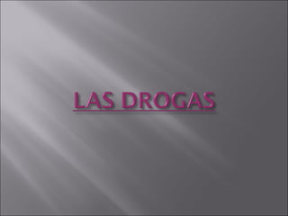 El documento habla sobre las drogas, sus efectos y consecuencias. Define droga como cualquier sustancia que puede alterar funciones del organismo. Explica los efectos dañinos del tabaco, alcohol y otras drogas como la cocaína, marihuana y LSD. También menciona factores sociales, familiares e individuales que pueden llevar al consumo de drogas y señales físicas de su uso.