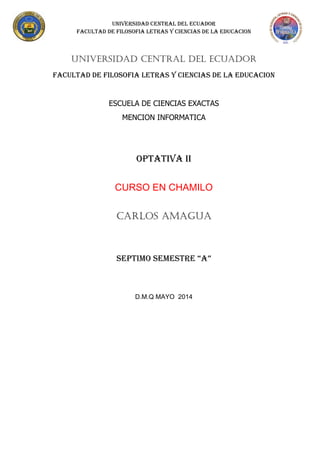 Chamilo es un software libre para la gestión de e-learning, diseñado para facilitar el acceso a la educación. El documento describe las herramientas disponibles en un curso, incluyendo la creación de contenidos, interacciones entre profesores y alumnos, tareas, foros y evaluaciones. Estas funciones permiten una comunicación efectiva y el seguimiento del rendimiento académico de los estudiantes.