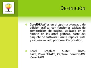 Este documento presenta un resumen del curso de CorelDRAW X4 para tres niveles de dificultad: básico, intermedio y avanzado. En el nivel básico se explican temas como el entorno de trabajo, cómo dibujar y modificar objetos. En el intermedio se enseña a aplicar contornos, rellenos y crear textos. Finalmente, el nivel avanzado cubre temas como trabajar con nodos, imágenes, herramientas interactivas y efectos especiales.