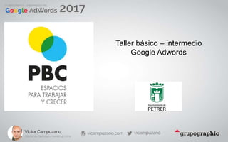 El documento presenta un taller sobre Google AdWords, donde se abordan conceptos clave sobre publicidad digital, tipos de anuncios, y la estructura de las cuentas en AdWords. Se detallan aspectos como la diferencia entre anuncios de búsqueda y de display, así como el proceso de selección y ordenación de anuncios. También se discuten estrategias para optimizar campañas a través de la selección de palabras clave y la mejora de la experiencia del usuario en la página de destino.