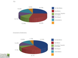 El documento resume conceptos clave sobre emprendimiento y la evolución del pensamiento emprendedor a través de la historia. Explica que el emprendimiento es fundamental para el crecimiento económico y describe diferentes enfoques como la destrucción creativa de Schumpeter. También analiza datos sobre la actividad emprendedora en Colombia y propone que la educación debe fomentar más el espíritu empresarial.