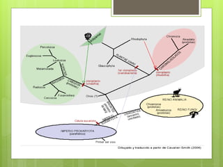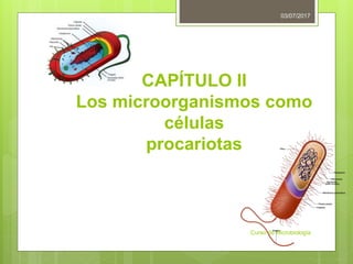 El documento describe las diferencias entre organismos procariotas y eucariotas. Explica que los procariotas incluyen bacterias y archaeas y carecen de núcleo y organelos. Su ADN se encuentra en el nucleoide. Los eucariotas tienen un núcleo que alberga el ADN y poseen organelos como mitocondrias y cloroplastos. También analiza el tamaño y composición química de los microorganismos.