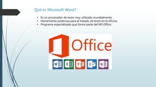 Este documento presenta una introducción al programa Microsoft Word, incluyendo una descripción de su interfaz, funciones básicas como alineación de párrafos, numeración, ortografía y gramática, diseño de páginas e inserción de tablas, gráficos e imágenes. El autor explica cómo empezar a usar el programa y las herramientas disponibles para crear y formatear documentos de texto.
