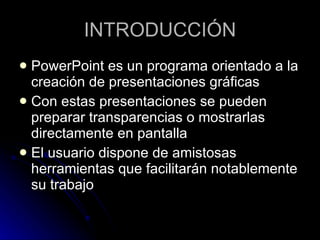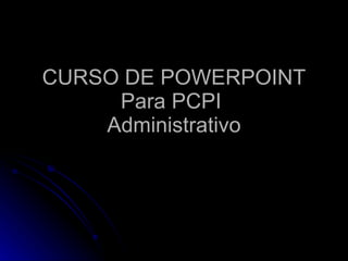 Este documento detalla un curso de PowerPoint dirigido a estudiantes de PCPI administrativo. Se cubren aspectos como la creación de presentaciones, uso de herramientas para agregar y modificar contenido, así como efectos especiales y configuración de impresión. Al finalizar, los estudiantes estarán capacitados para crear presentaciones completas y efectivas.