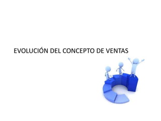 El documento describe la evolución del concepto de ventas y el concepto de cliente. Explica que las ventas implican el intercambio entre el vendedor y el cliente para satisfacer las necesidades del cliente. Luego describe cómo ha cambiado la estructura de las organizaciones de ventas a lo largo de los años para enfocarse más en el marketing y la gestión de clientes. Finalmente, clasifica diferentes tipos de clientes y ofrece recomendaciones para interactuar con cada tipo.