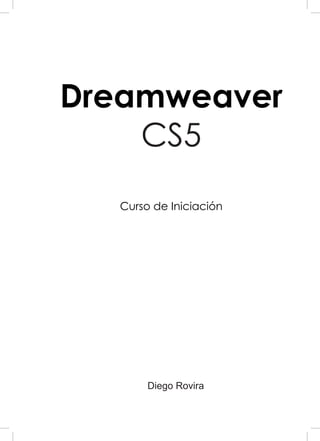 Este documento presenta un curso de introducción a Dreamweaver CS5. Incluye 15 capítulos que cubren temas como la instalación de Dreamweaver, el entorno de trabajo, la creación de páginas web estáticas y dinámicas, el uso de estilos CSS, imágenes, tablas, capas, formularios, marcos, multimedia, la definición de sitios web, plantillas y una introducción a bases de datos y el lenguaje SQL. El objetivo es proporcionar los conocimientos básicos para empezar a desarrollar sitios web profes