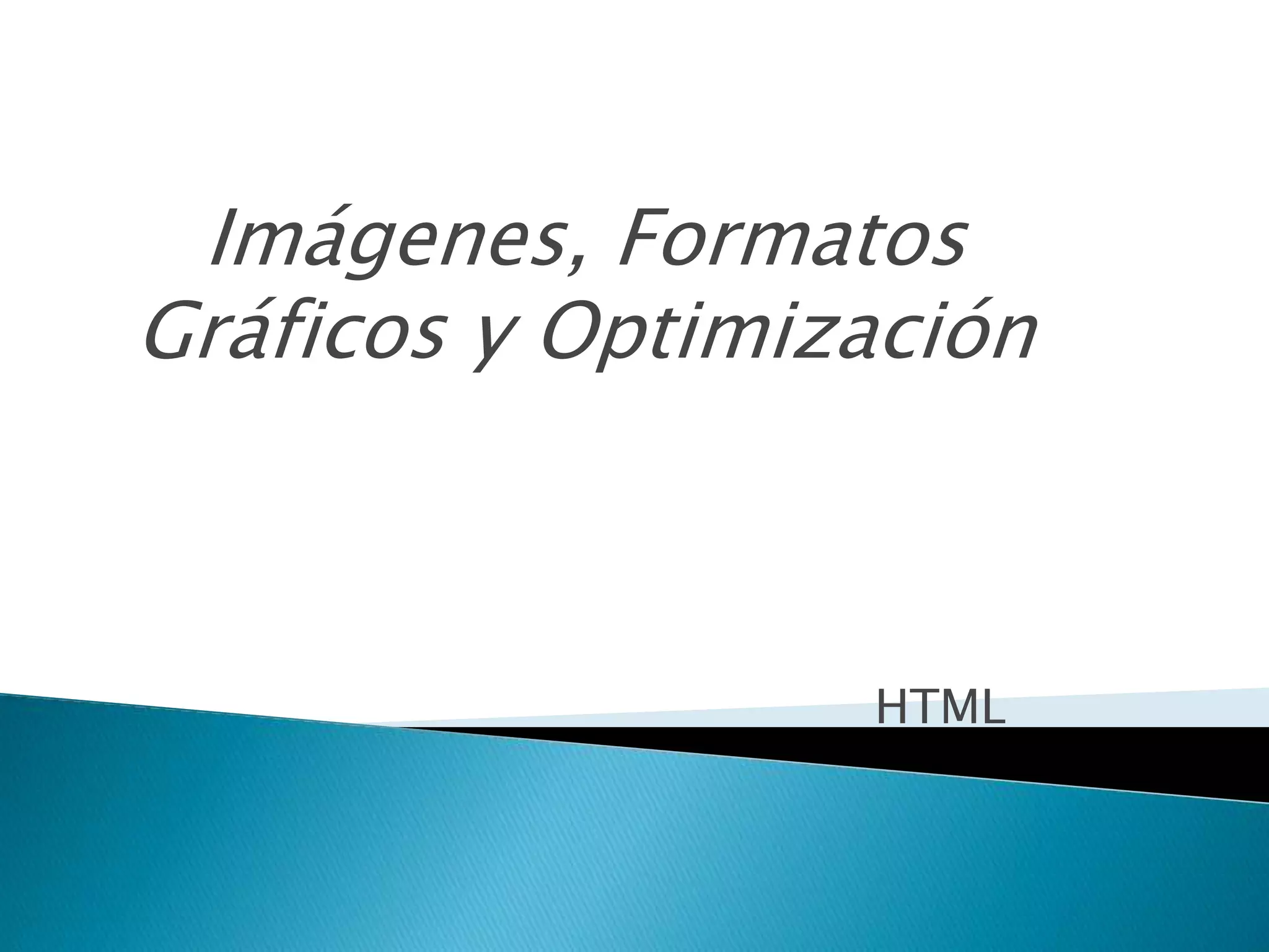 El documento describe los formatos de archivo más comunes para imágenes en la web, GIF y JPG, y cómo optimizarlos para reducir su tamaño. Explica que el formato GIF es mejor para dibujos mientras que JPG es mejor para fotografías. También cubre cómo insertar imágenes en HTML usando la etiqueta <img> y sus atributos como "src", "width", "height" y "align".