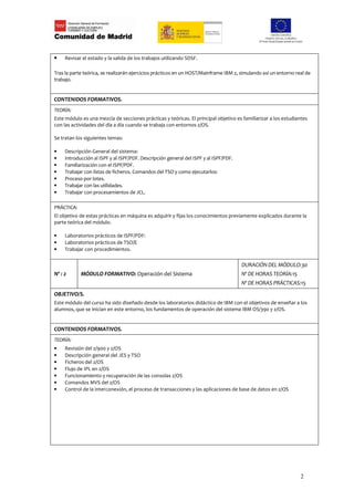 Este curso de 255 horas sobre la operación del sistema IBM Z/OS tiene como objetivo capacitar a los estudiantes en los conceptos fundamentales y funciones del sistema operativo z/OS, incluyendo el proceso de arranque del sistema, el manejo de la consola y mandatos, la planificación de tareas, y el control de funciones de red. El curso consta de 6 módulos que cubren temas como la introducción a z/OS, las operaciones del sistema, la operación JES2, el manejo de la consola HMC, JCL y utilidades, y la comunicación
